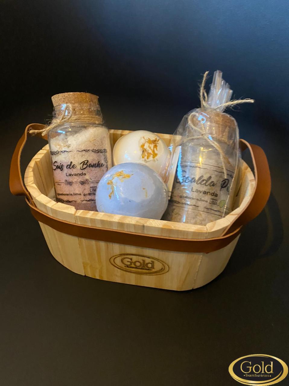 ACOMPANHA BANHEIRINHA DE MADEIRA 0.17X0.11X0.18 PARA DECORAR AMBIENTE, SAIS DE BANHO, E DUAS ESFERAS EFERVESCENTE.